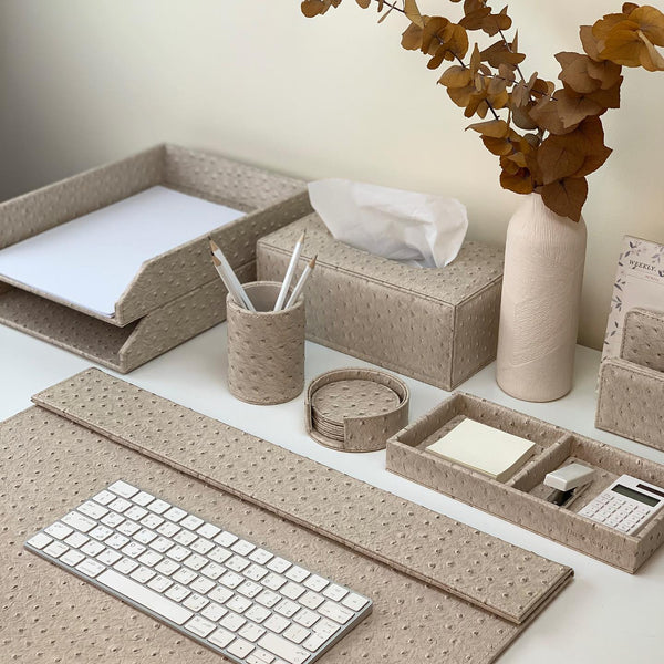 Desk Set (3 items) + File Trays (2 pcs) + Tissue Box + Desk Pad + Mirror + Coaster (4 pcs) + White Board + Portfolio Folder