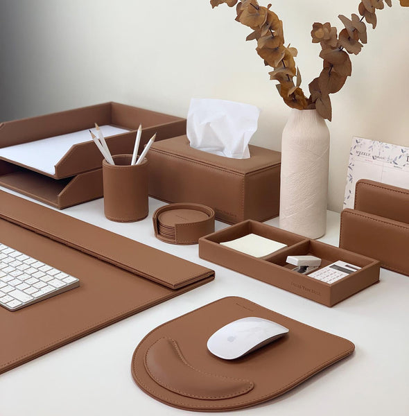 Desk Set (3 pcs) + File Trays (2 pcs) + Tissue Box + Desk Pad + Mouse Pad + Mirror + Coaster (4 pcs) + White Board + Portfolio Folder